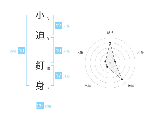 小迫 釘身さんの総格は29画の4点!