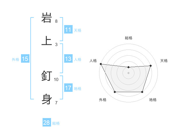 岩上 釘身さんを姓名の画数から五運を鑑定