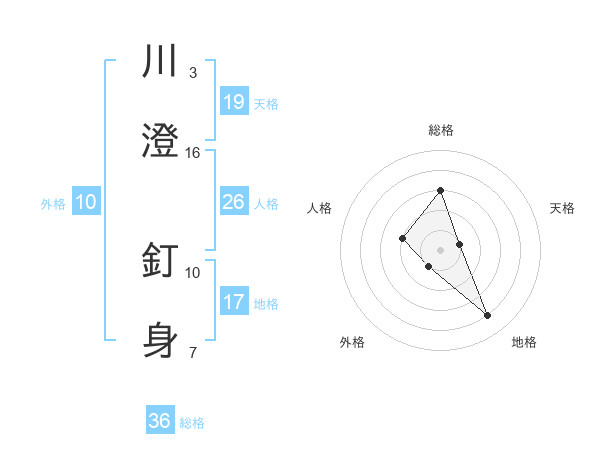 川澄 釘身さんを姓名の画数から五運を鑑定