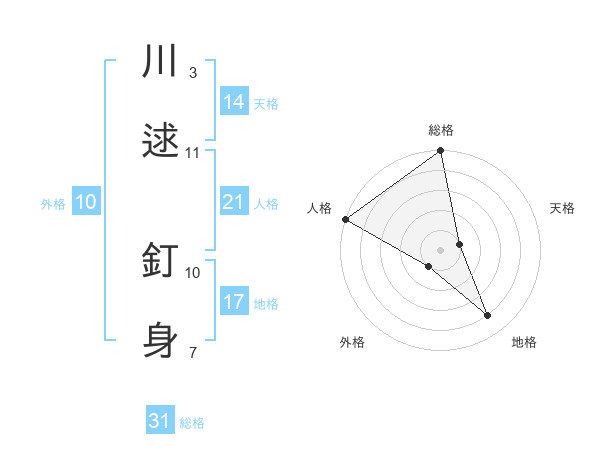 川逑 釘身さんを姓名の画数から五運を鑑定