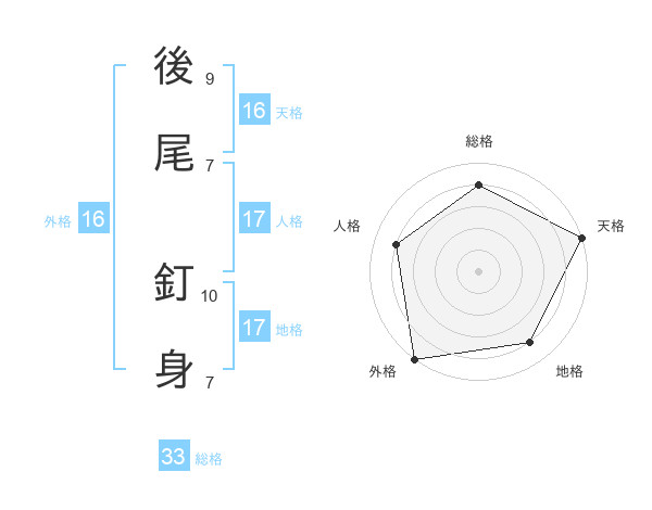 後尾 釘身さんの総格は33画の4点!
