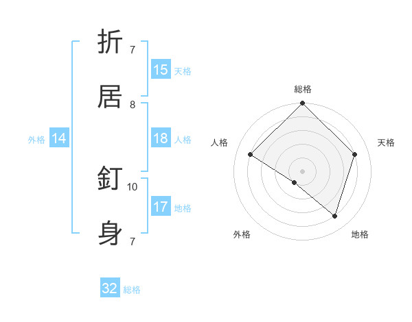 折居 釘身さんの総格は32画の5点!