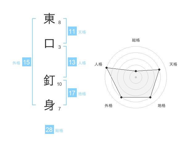 東口 釘身さんの総格は28画の1点!