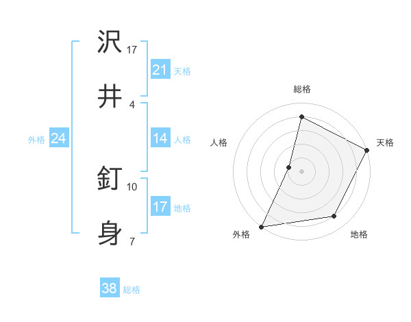 沢井 釘身さんの天格は21画の5点!