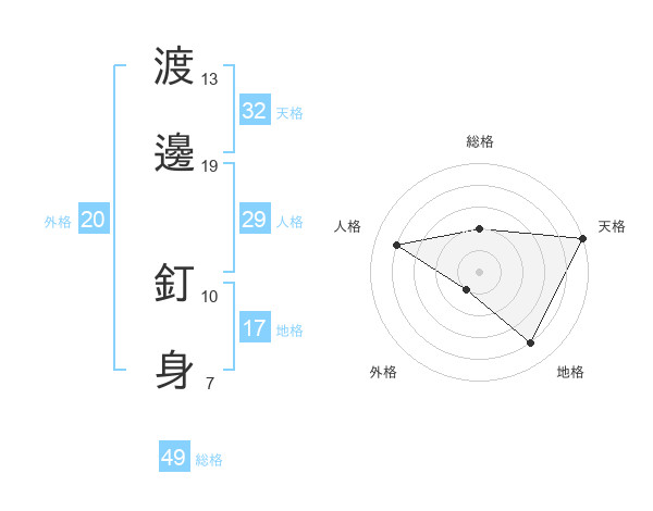 渡邊 釘身さんの天格は32画の5点!