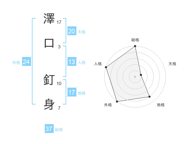 澤口 釘身さんの総格は37画の5点!