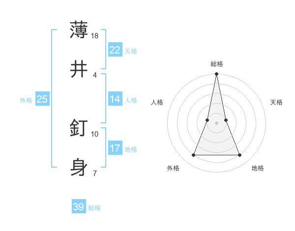 薄井 釘身さんを姓名の画数から五運を鑑定
