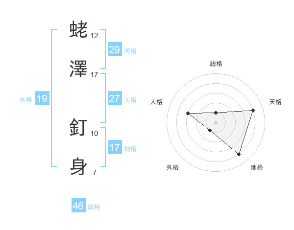 蛯澤 釘身さんの総格は46画の1点!