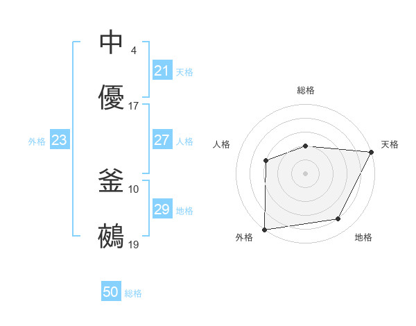 中優 釜鵺さんの総格は50画の2点!