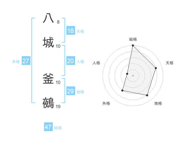 八城 釜鵺さんを姓名の画数から五運を鑑定