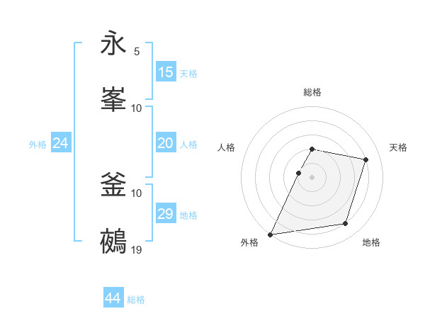 永峯 釜鵺さんの総格は44画の2点!