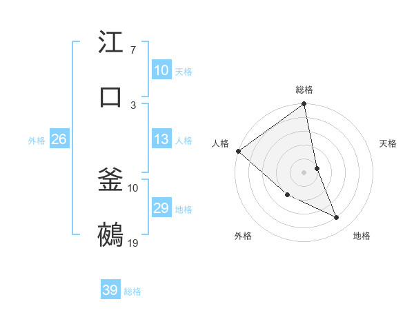 江口 釜鵺さんの総格は39画の5点!