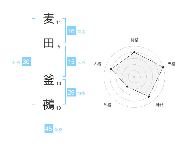 麦田 釜鵺さんを姓名の画数から五運を鑑定
