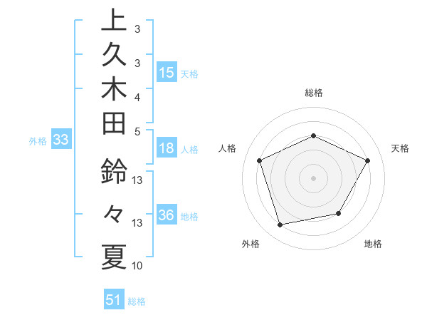 上久木田 鈴々夏さんを姓名の画数から五運を鑑定