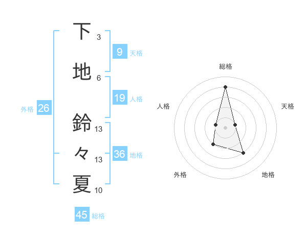 下地 鈴々夏さんを姓名の画数から五運を鑑定
