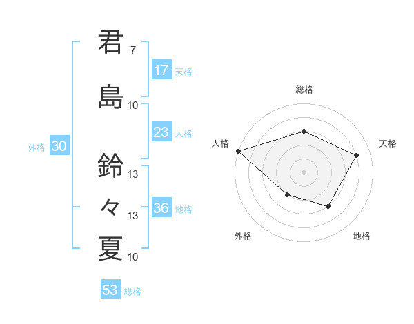 君島 鈴々夏さんの総格は53画の3点!