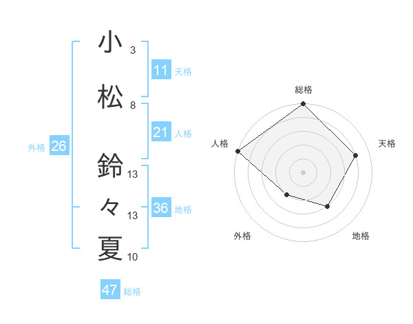 小松 鈴々夏さんを姓名の画数から五運を鑑定