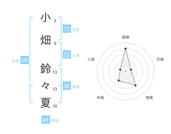 小畑 鈴々夏さんの天格は12画の1点!