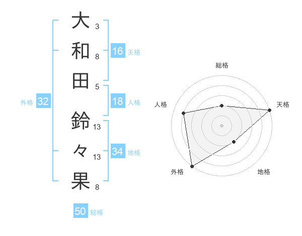 大和田 鈴々果さんの総格は50画の2点