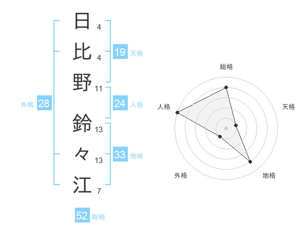 日比野 鈴々江さんを姓名の画数から五運を鑑定