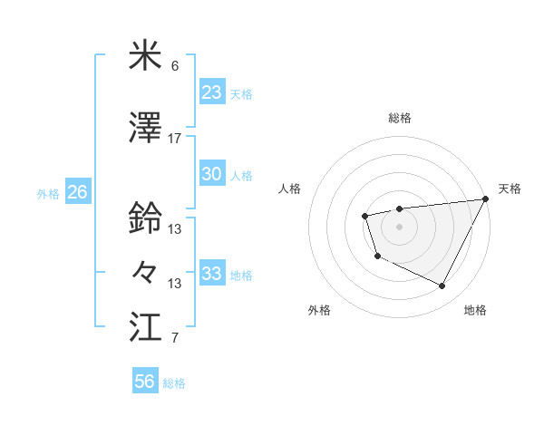 米澤 鈴々江さんを姓名の画数から五運を鑑定