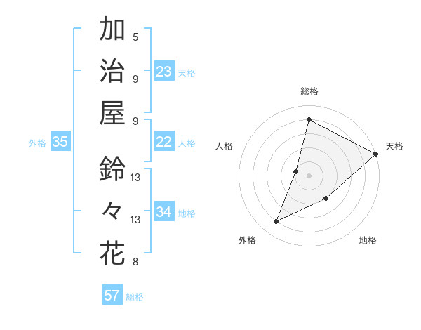 加治屋 鈴々花さんを姓名の画数から五運を鑑定