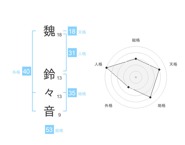 魏 鈴々音さんの人格は31画の5点!