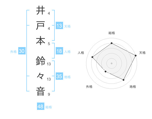井戸本 鈴々音さんの天格は13画の5点!