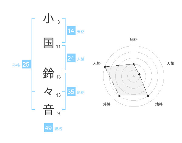 小国 鈴々音さんの外格は25画の4点!