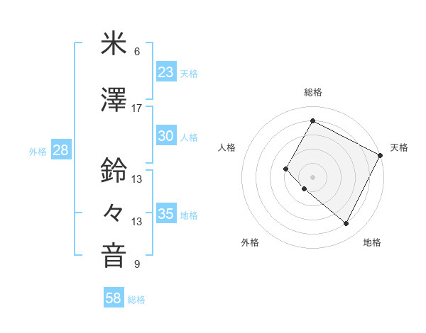 米澤 鈴々音さんを姓名の画数から五運を鑑定