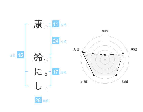 康 鈴にしさんの総格は28画の1点!