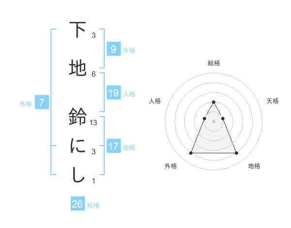 下地 鈴にしさんを姓名の画数から五運を鑑定
