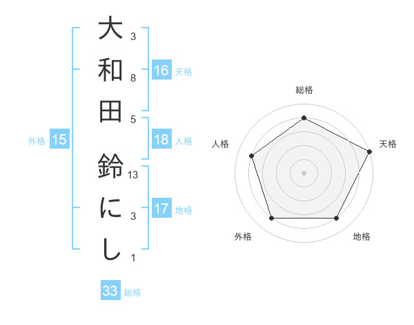 大和田 鈴にしさんを姓名の画数から五運を鑑定
