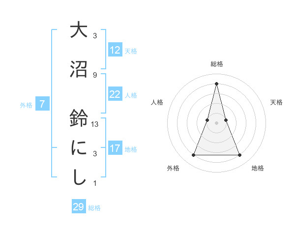 大沼 鈴にしさんの総格は29画の4点