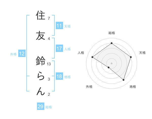 住友 鈴らんさんの総格は29画の4点!