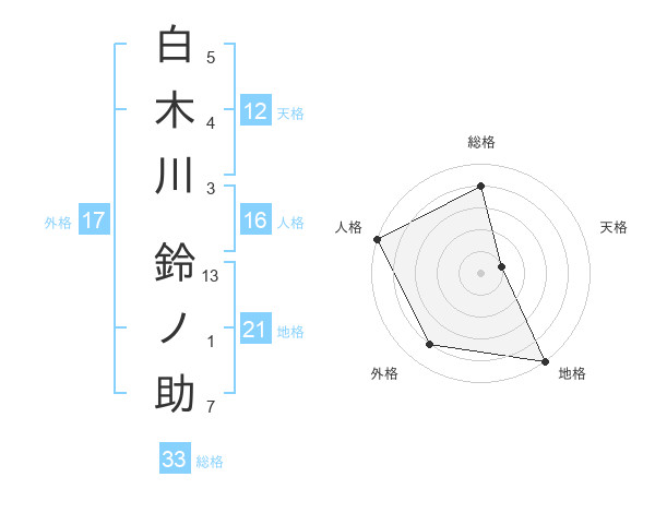 白木川 鈴ノ助さんの総格は33画の4点!
