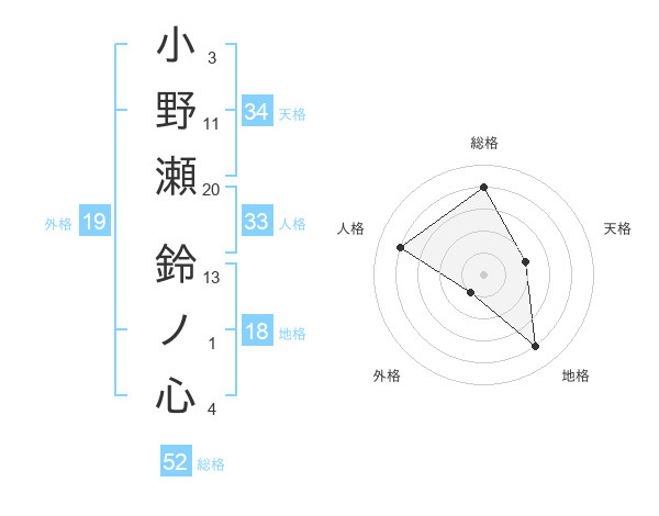 小野瀬 鈴ノ心さんの総格は52画の4点