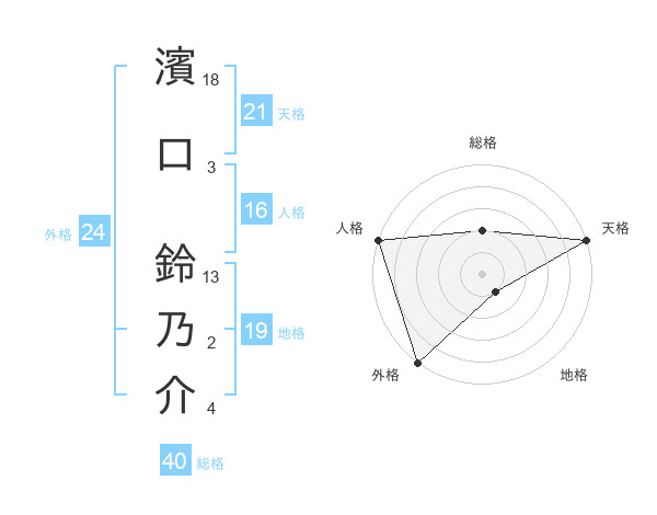 濱口 鈴乃介さんの天格は21画の5点!