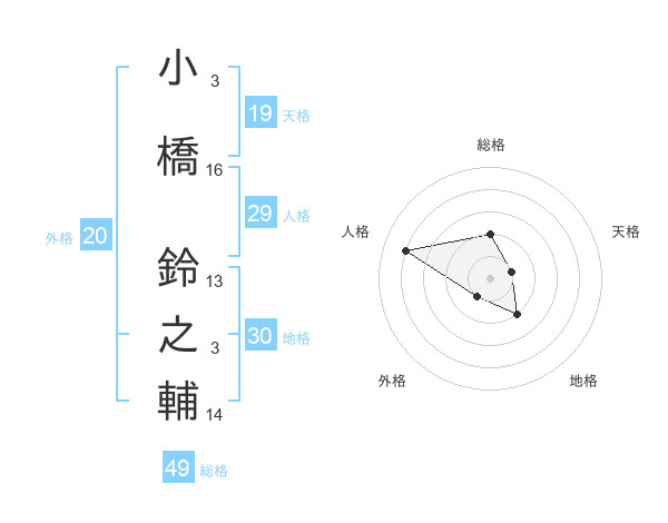 小橋 鈴之輔さんを姓名の画数から五運を鑑定