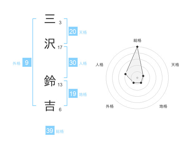 三沢 鈴吉さんを姓名の画数から五運を鑑定