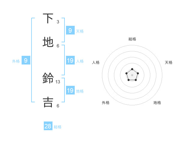 下地 鈴吉さんを姓名の画数から五運を鑑定