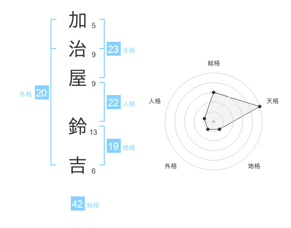 加治屋 鈴吉さんの天格は23画の5点