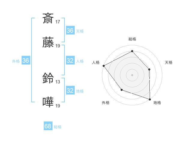 斎藤 鈴嘩さんを姓名の画数から五運を鑑定