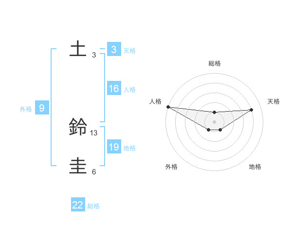 土 鈴圭さんを姓名の画数から五運を鑑定