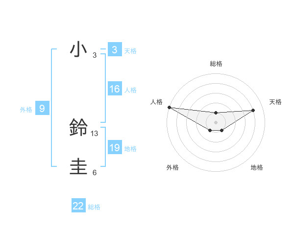 小 鈴圭さんの総格は22画の1点!