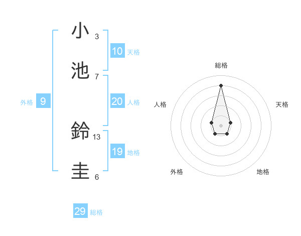 小池 鈴圭さんの総格は29画の4点!