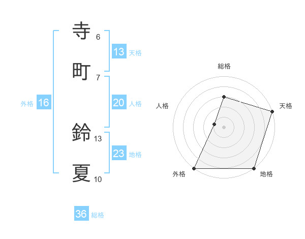 寺町 鈴夏さんを姓名の画数から五運を鑑定