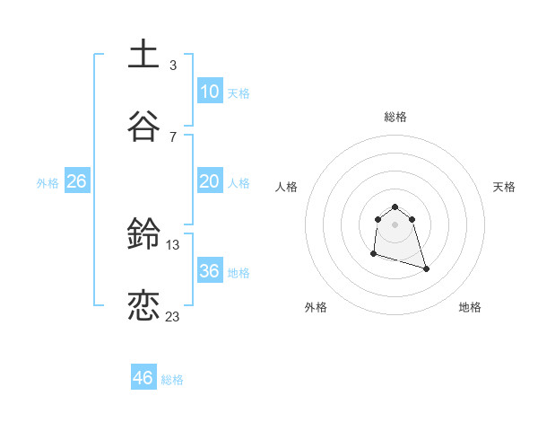 土谷 鈴恋さんの総格は46画の1点!