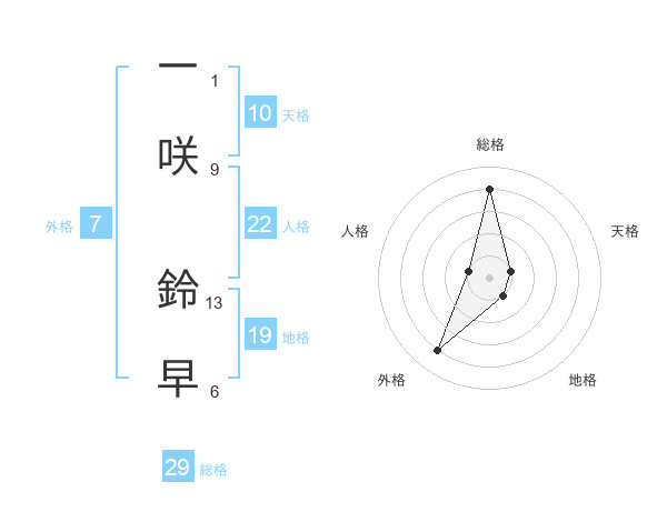 一咲 鈴早さんを姓名の画数から五運を鑑定