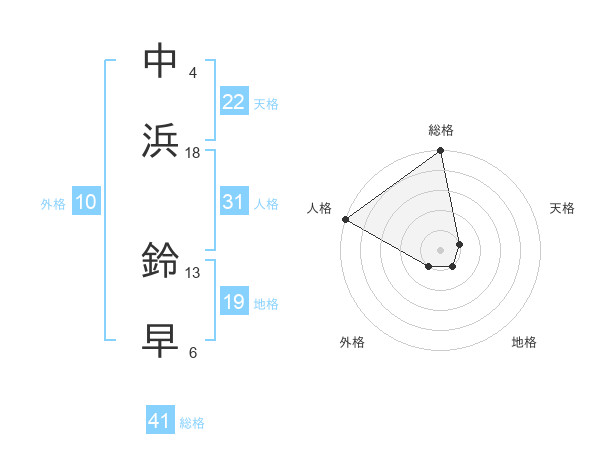 中浜 鈴早さんを姓名の画数から五運を鑑定